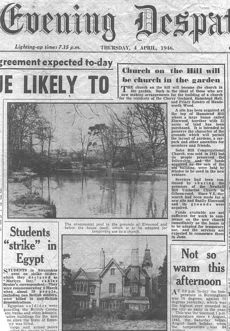 The second cutting is from the Evening Despatch 4 April 1946, and it covers the sale of Elmwood House, I dont know what happened to the Rabone's or why the house was sold, if you have any info on them I Would love to here from you.